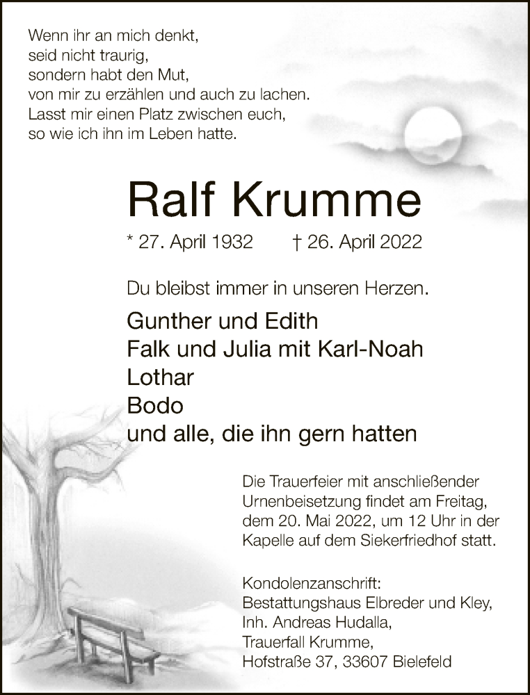 Hier finden Sie alle Traueranzeigen aus der Zeitung, die bisher für Ralf Krumme erschienen sind. Weitere Traueranzeigen, die in der Zeitung erscheinen, werden hier ebenfalls aufgelistet