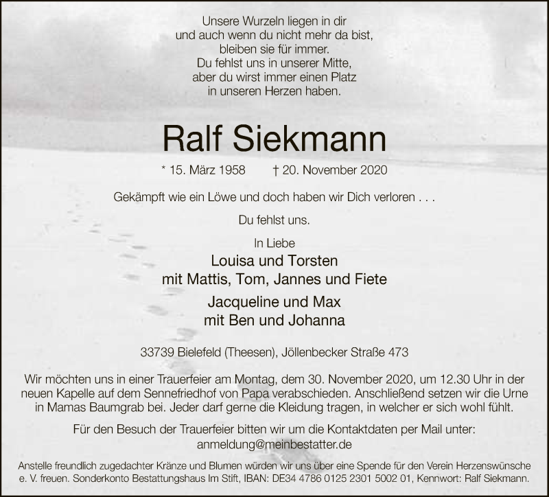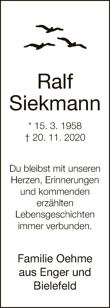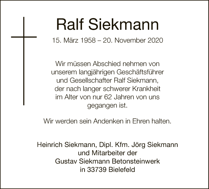 Hier finden Sie alle Traueranzeigen aus der Zeitung, die bisher für Ralf Siekmann erschienen sind. Weitere Traueranzeigen, die in der Zeitung erscheinen, werden hier ebenfalls aufgelistet