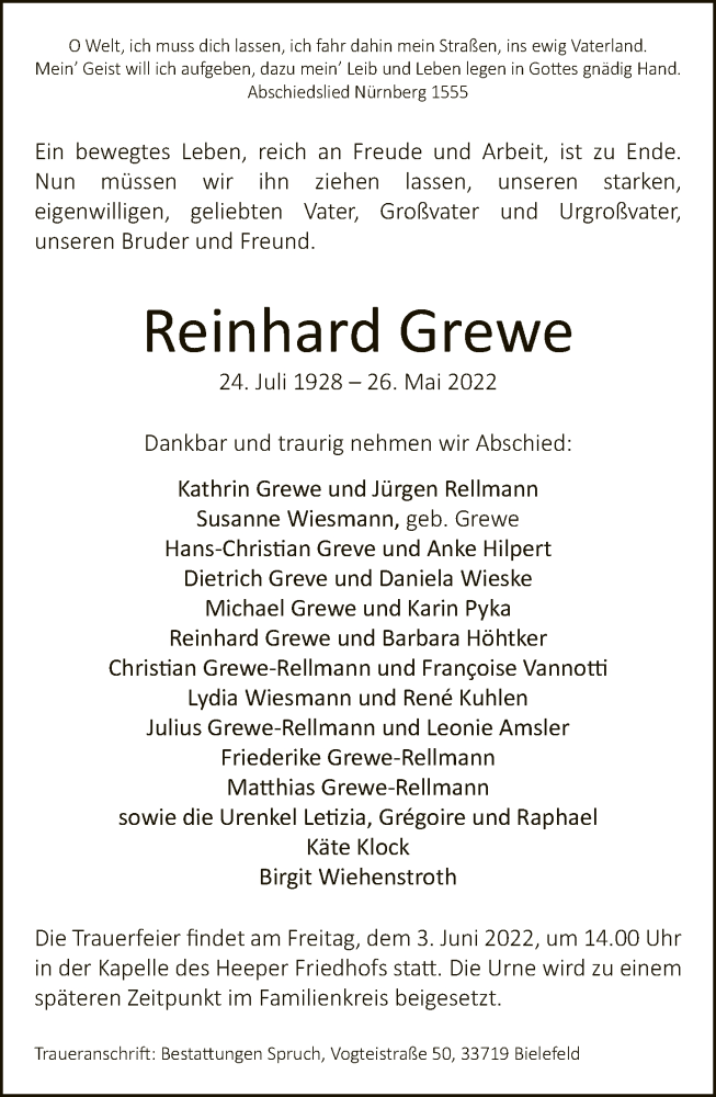 Hier finden Sie alle Traueranzeigen aus der Zeitung, die bisher für Reinhard Grewe erschienen sind. Weitere Traueranzeigen, die in der Zeitung erscheinen, werden hier ebenfalls aufgelistet