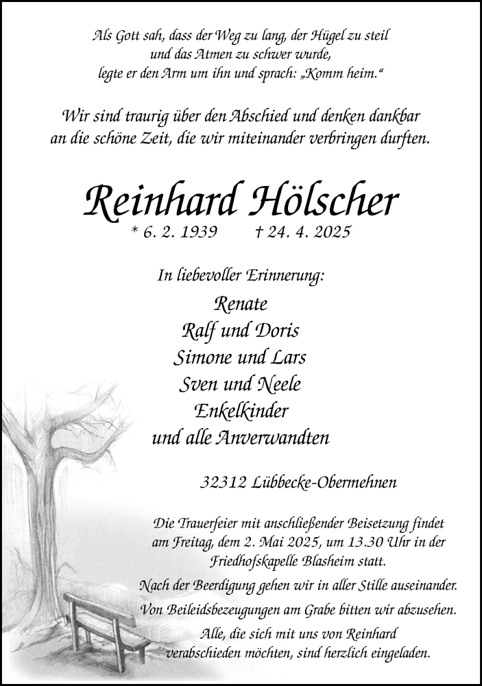 Hier finden Sie alle Traueranzeigen aus der Zeitung, die bisher für Reinhard Hölscher erschienen sind. Weitere Traueranzeigen, die in der Zeitung erscheinen, werden hier ebenfalls aufgelistet