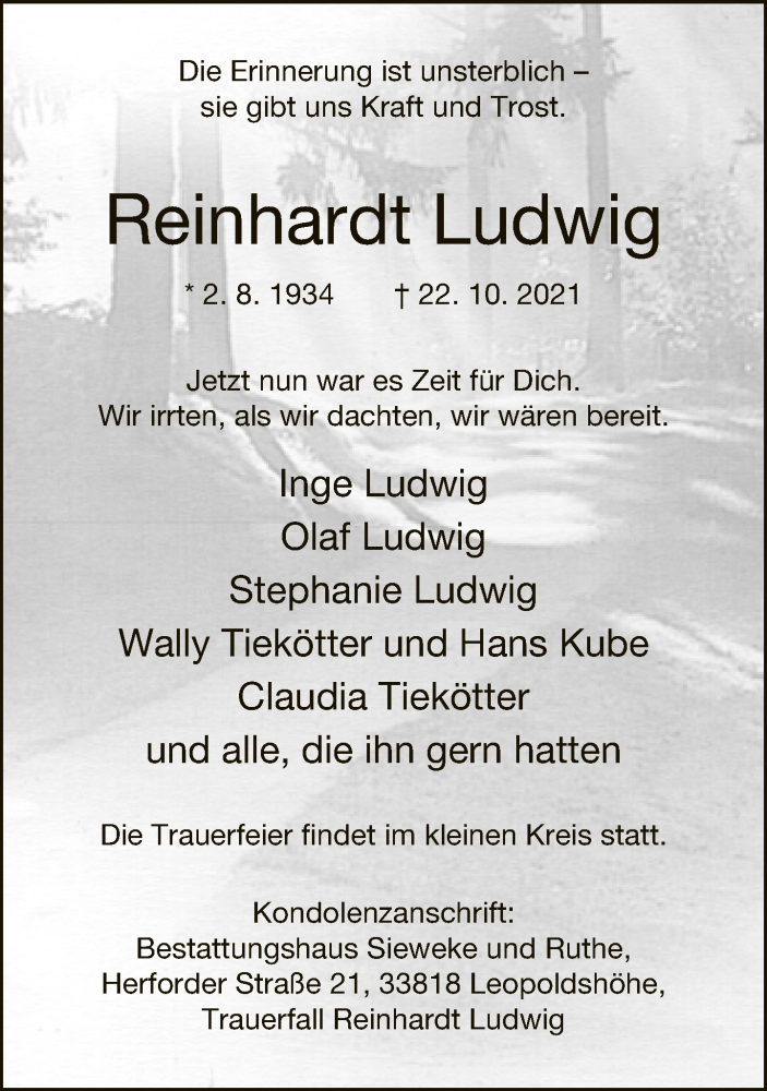 Hier finden Sie alle Traueranzeigen aus der Zeitung, die bisher für Reinhardt Ludwig erschienen sind. Weitere Traueranzeigen, die in der Zeitung erscheinen, werden hier ebenfalls aufgelistet