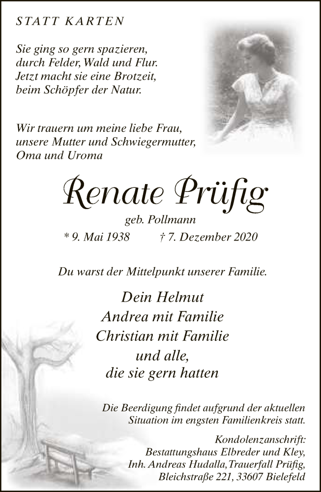 Hier finden Sie alle Traueranzeigen aus der Zeitung, die bisher für Renate Prüfig erschienen sind. Weitere Traueranzeigen, die in der Zeitung erscheinen, werden hier ebenfalls aufgelistet