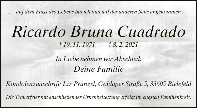 Hier finden Sie alle Traueranzeigen aus der Zeitung, die bisher für Ricardo Bruna Cuadrado erschienen sind. Weitere Traueranzeigen, die in der Zeitung erscheinen, werden hier ebenfalls aufgelistet