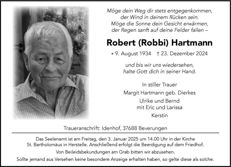 Hier finden Sie alle Traueranzeigen aus der Zeitung, die bisher für Robert Robbi Hartmann erschienen sind. Weitere Traueranzeigen, die in der Zeitung erscheinen, werden hier ebenfalls aufgelistet