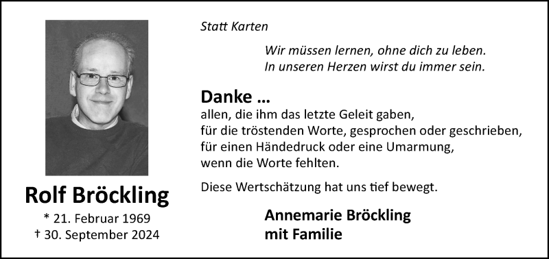Hier finden Sie alle Traueranzeigen aus der Zeitung, die bisher für Rolf Bröckling erschienen sind. Weitere Traueranzeigen, die in der Zeitung erscheinen, werden hier ebenfalls aufgelistet