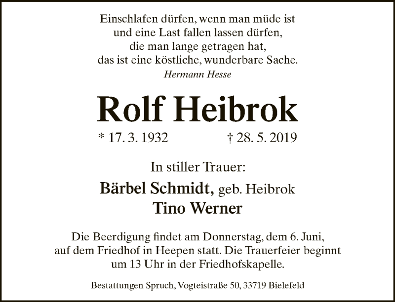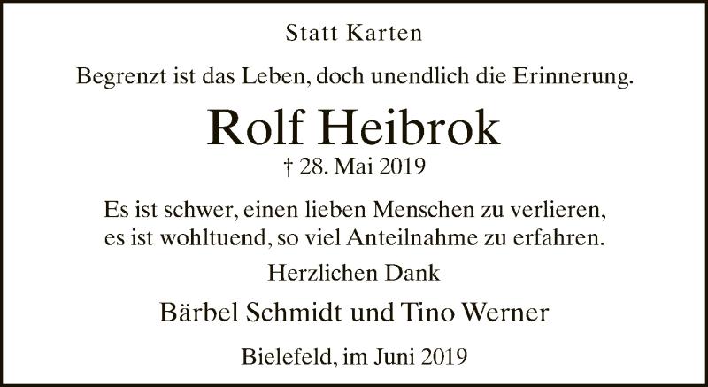 Hier finden Sie alle Traueranzeigen aus der Zeitung, die bisher für Rolf Heibrok erschienen sind. Weitere Traueranzeigen, die in der Zeitung erscheinen, werden hier ebenfalls aufgelistet