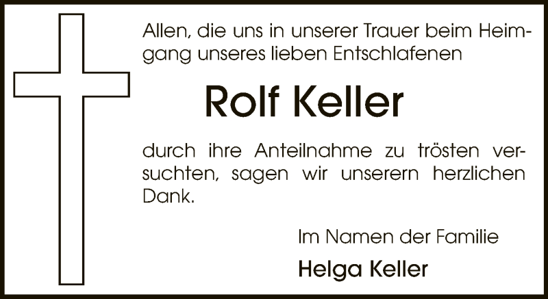 Hier finden Sie alle Traueranzeigen aus der Zeitung, die bisher für Rolf Keller erschienen sind. Weitere Traueranzeigen, die in der Zeitung erscheinen, werden hier ebenfalls aufgelistet