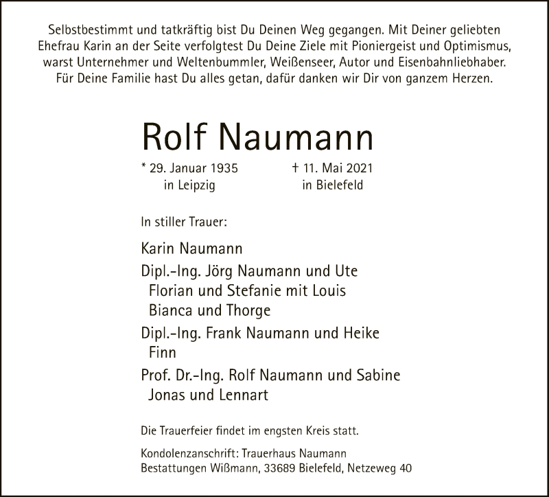 Hier finden Sie alle Traueranzeigen aus der Zeitung, die bisher für Rolf Naumann erschienen sind. Weitere Traueranzeigen, die in der Zeitung erscheinen, werden hier ebenfalls aufgelistet