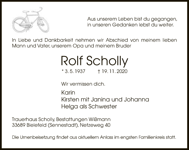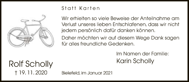 Hier finden Sie alle Traueranzeigen aus der Zeitung, die bisher für Rolf Scholly erschienen sind. Weitere Traueranzeigen, die in der Zeitung erscheinen, werden hier ebenfalls aufgelistet