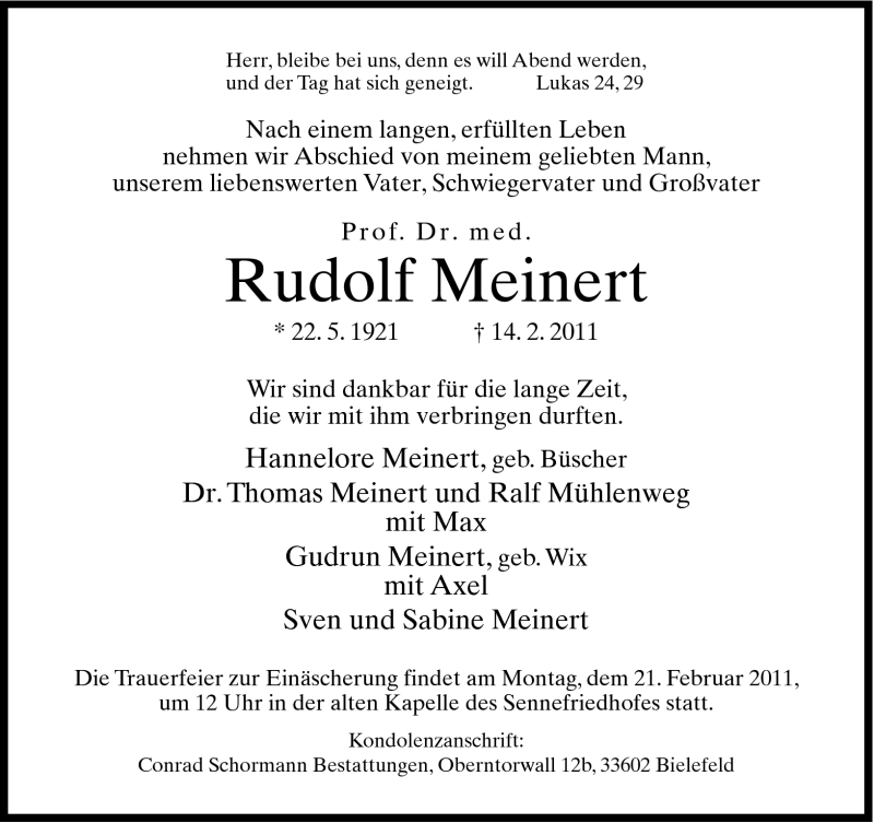 Hier finden Sie alle Traueranzeigen aus der Zeitung, die bisher für Rudolf Meinert erschienen sind. Weitere Traueranzeigen, die in der Zeitung erscheinen, werden hier ebenfalls aufgelistet
