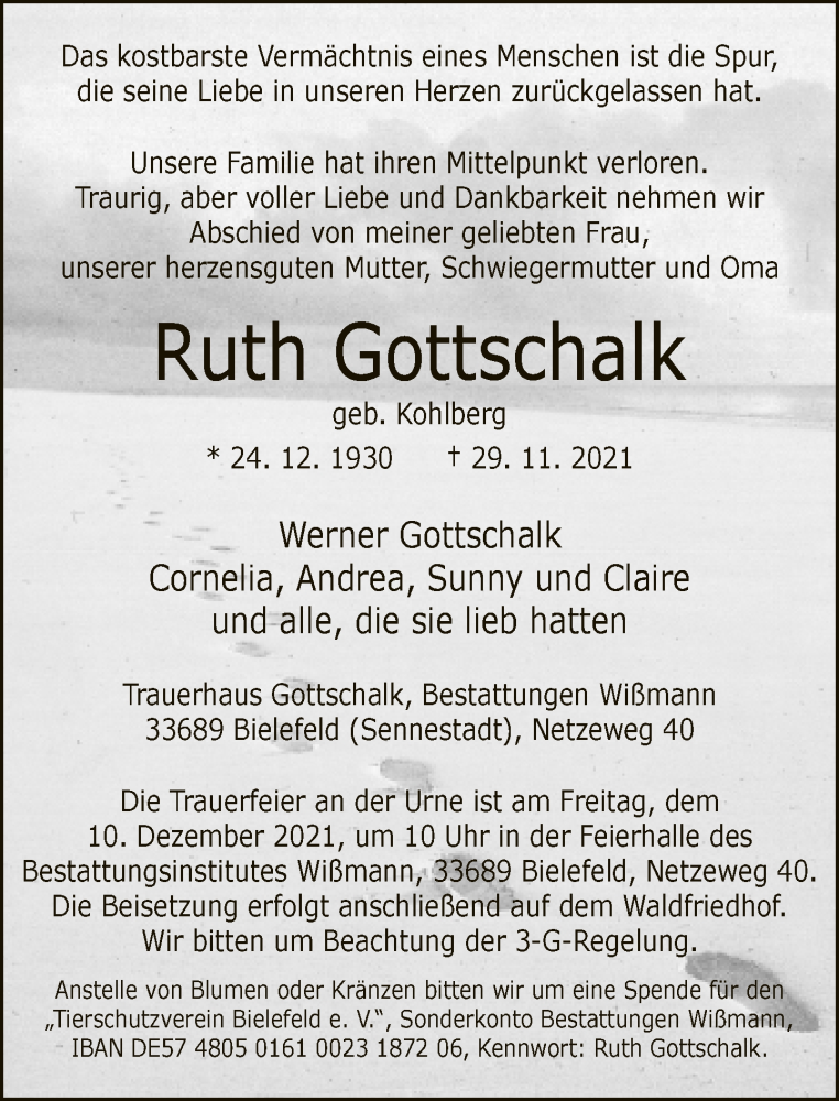 Hier finden Sie alle Traueranzeigen aus der Zeitung, die bisher für Ruth Gottschalk erschienen sind. Weitere Traueranzeigen, die in der Zeitung erscheinen, werden hier ebenfalls aufgelistet
