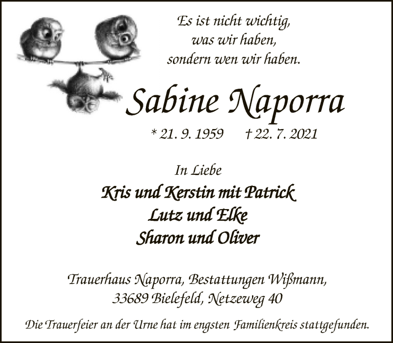 Hier finden Sie alle Traueranzeigen aus der Zeitung, die bisher für Sabine Naporra erschienen sind. Weitere Traueranzeigen, die in der Zeitung erscheinen, werden hier ebenfalls aufgelistet
