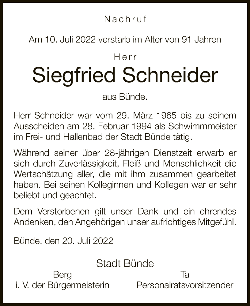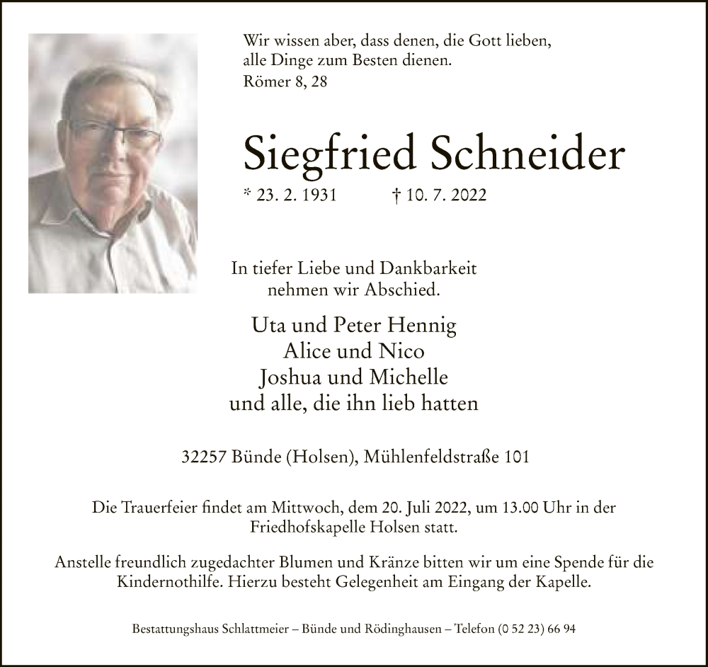 Hier finden Sie alle Traueranzeigen aus der Zeitung, die bisher für Siegfried Schneider erschienen sind. Weitere Traueranzeigen, die in der Zeitung erscheinen, werden hier ebenfalls aufgelistet