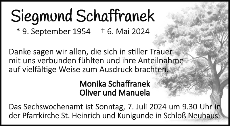 Hier finden Sie alle Traueranzeigen aus der Zeitung, die bisher für Siegmund Schaffranek erschienen sind. Weitere Traueranzeigen, die in der Zeitung erscheinen, werden hier ebenfalls aufgelistet