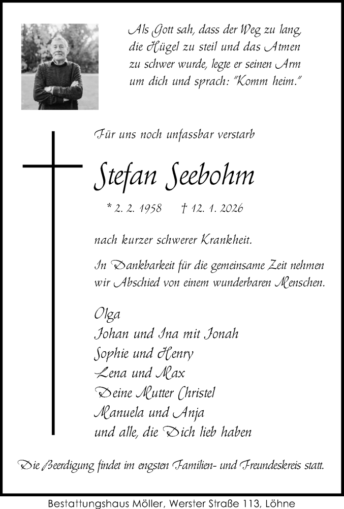 Hier finden Sie alle Traueranzeigen aus der Zeitung, die bisher für Stefan Seebohm erschienen sind. Weitere Traueranzeigen, die in der Zeitung erscheinen, werden hier ebenfalls aufgelistet