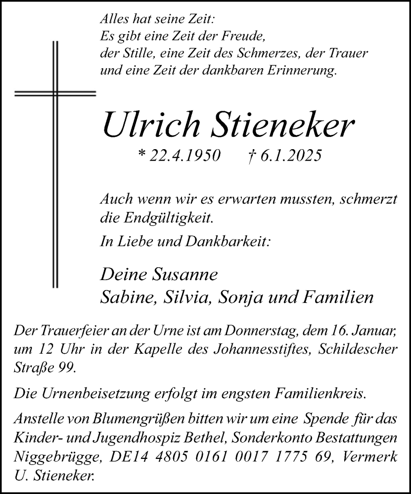 Hier finden Sie alle Traueranzeigen aus der Zeitung, die bisher für Ulrich Stieneker erschienen sind. Weitere Traueranzeigen, die in der Zeitung erscheinen, werden hier ebenfalls aufgelistet