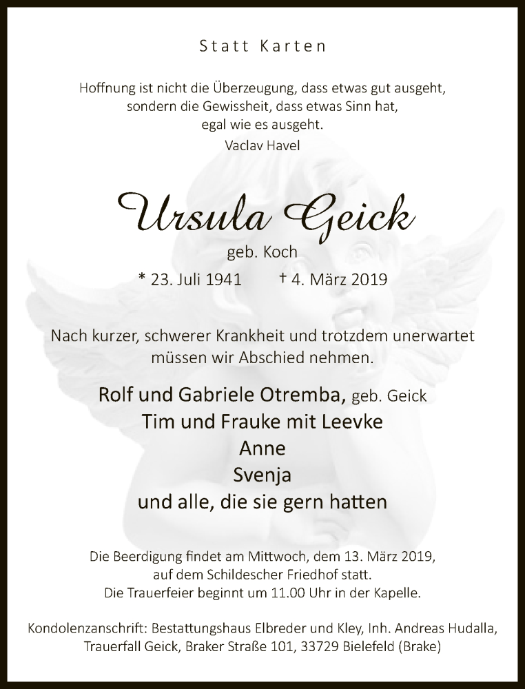 Hier finden Sie alle Traueranzeigen aus der Zeitung, die bisher für Ursula Geick erschienen sind. Weitere Traueranzeigen, die in der Zeitung erscheinen, werden hier ebenfalls aufgelistet