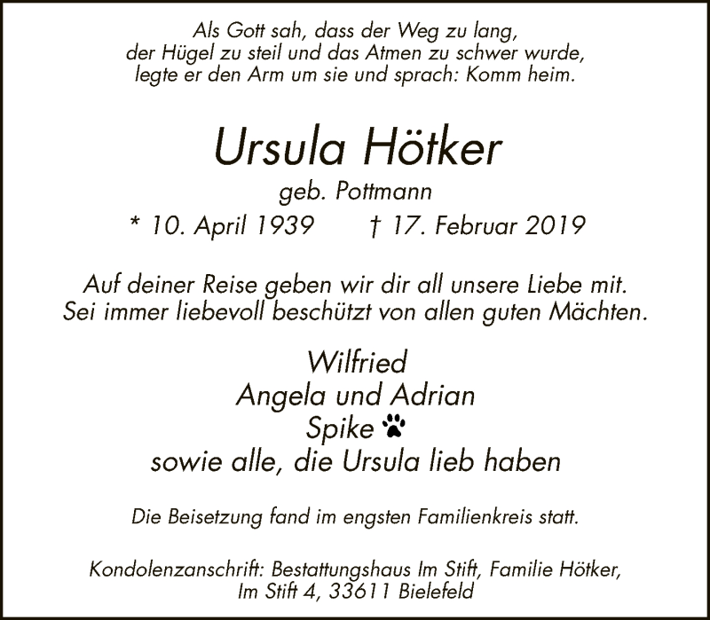 Hier finden Sie alle Traueranzeigen aus der Zeitung, die bisher für Ursula Hötker erschienen sind. Weitere Traueranzeigen, die in der Zeitung erscheinen, werden hier ebenfalls aufgelistet