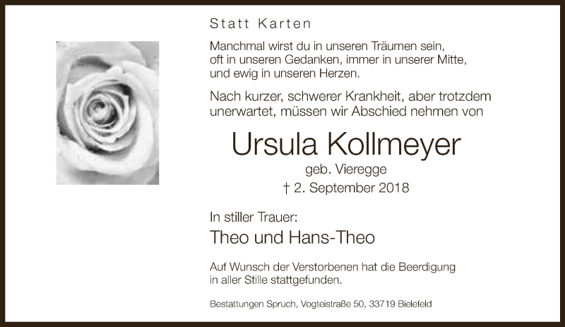 Hier finden Sie alle Traueranzeigen aus der Zeitung, die bisher für Ursula Kollmeyer erschienen sind. Weitere Traueranzeigen, die in der Zeitung erscheinen, werden hier ebenfalls aufgelistet