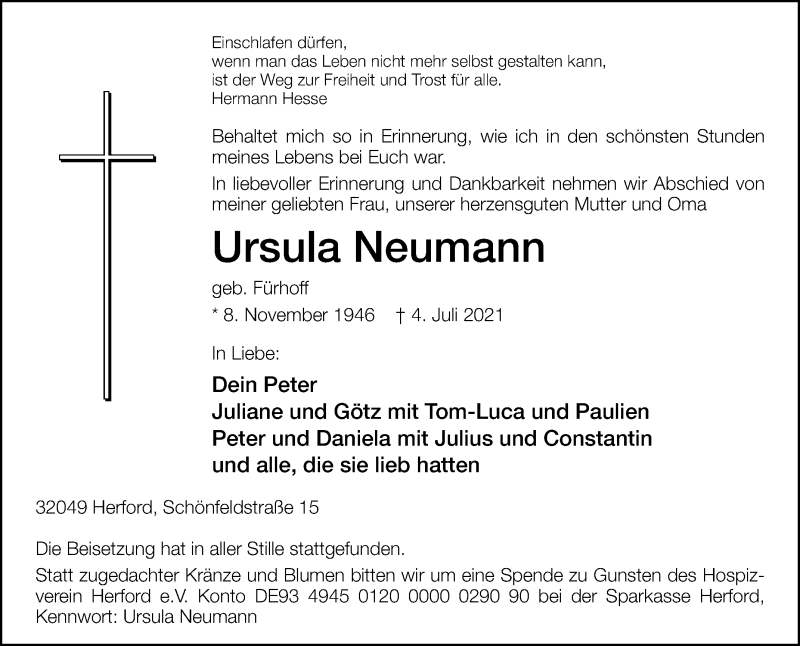 Hier finden Sie alle Traueranzeigen aus der Zeitung, die bisher für Ursula Neumann erschienen sind. Weitere Traueranzeigen, die in der Zeitung erscheinen, werden hier ebenfalls aufgelistet