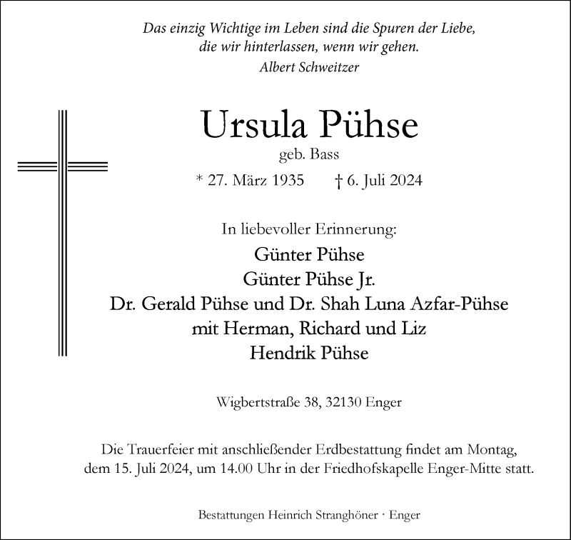 Hier finden Sie alle Traueranzeigen aus der Zeitung, die bisher für Ursula Pühse erschienen sind. Weitere Traueranzeigen, die in der Zeitung erscheinen, werden hier ebenfalls aufgelistet