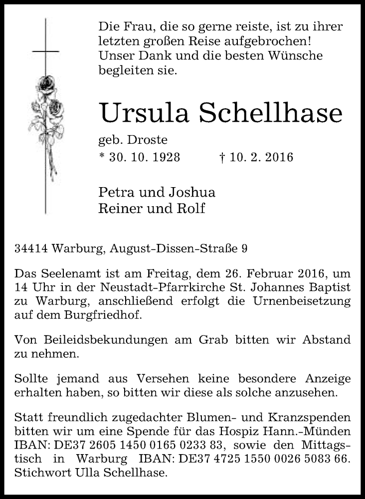 Hier finden Sie alle Traueranzeigen aus der Zeitung, die bisher für Ursula Schellhase erschienen sind. Weitere Traueranzeigen, die in der Zeitung erscheinen, werden hier ebenfalls aufgelistet