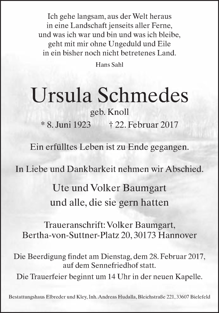 Hier finden Sie alle Traueranzeigen aus der Zeitung, die bisher für Ursula Schmedes erschienen sind. Weitere Traueranzeigen, die in der Zeitung erscheinen, werden hier ebenfalls aufgelistet