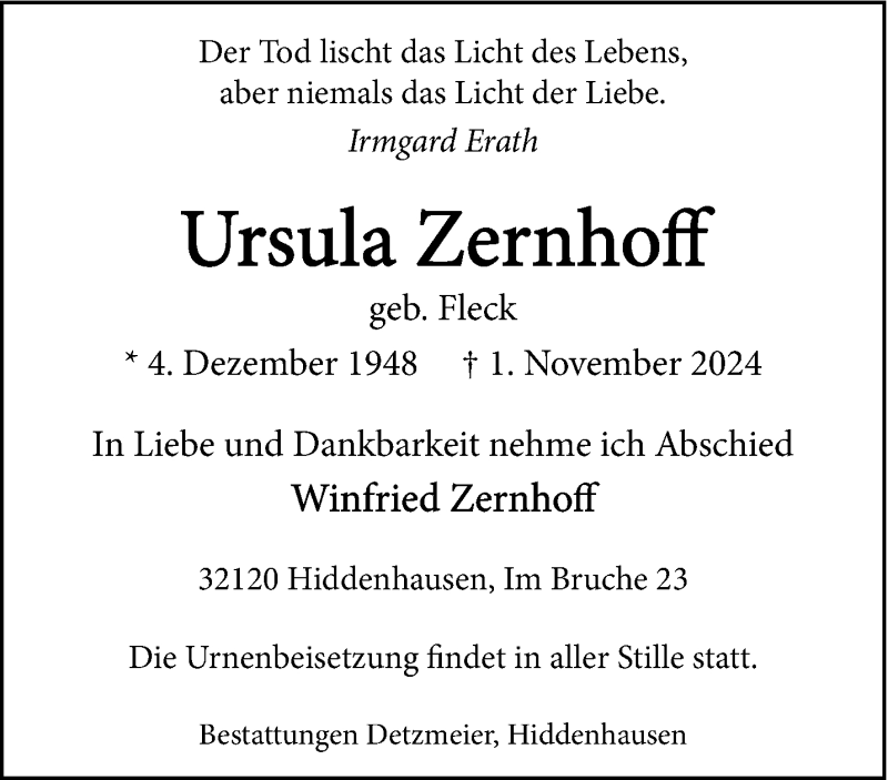 Hier finden Sie alle Traueranzeigen aus der Zeitung, die bisher für Ursula Zernhoff erschienen sind. Weitere Traueranzeigen, die in der Zeitung erscheinen, werden hier ebenfalls aufgelistet