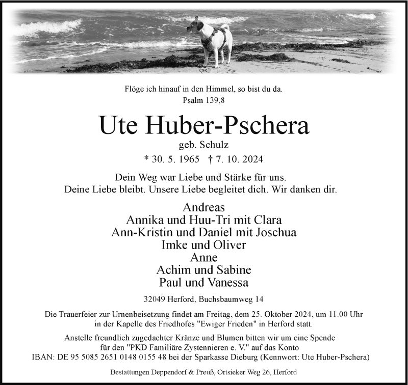 Hier finden Sie alle Traueranzeigen aus der Zeitung, die bisher für Ute Huber-Pschera erschienen sind. Weitere Traueranzeigen, die in der Zeitung erscheinen, werden hier ebenfalls aufgelistet