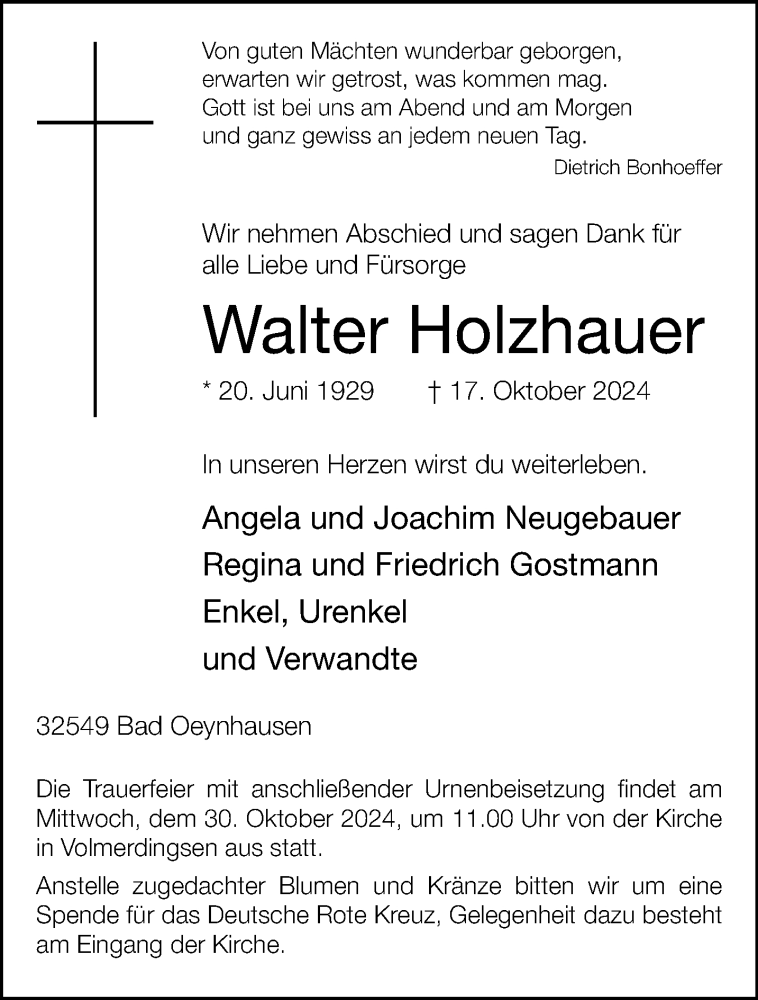 Hier finden Sie alle Traueranzeigen aus der Zeitung, die bisher für Walter Holzhauer erschienen sind. Weitere Traueranzeigen, die in der Zeitung erscheinen, werden hier ebenfalls aufgelistet