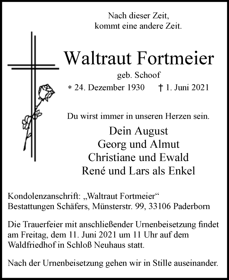 Hier finden Sie alle Traueranzeigen aus der Zeitung, die bisher für Waltraut Fortmeier erschienen sind. Weitere Traueranzeigen, die in der Zeitung erscheinen, werden hier ebenfalls aufgelistet