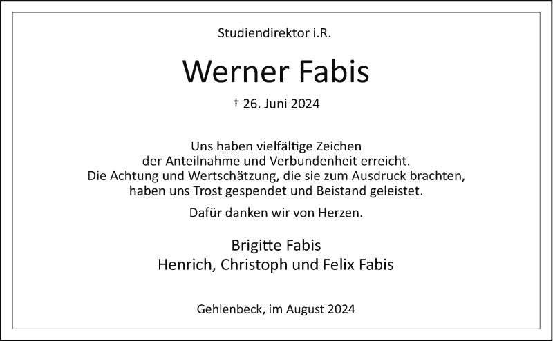 Hier finden Sie alle Traueranzeigen aus der Zeitung, die bisher für Werner Fabis erschienen sind. Weitere Traueranzeigen, die in der Zeitung erscheinen, werden hier ebenfalls aufgelistet
