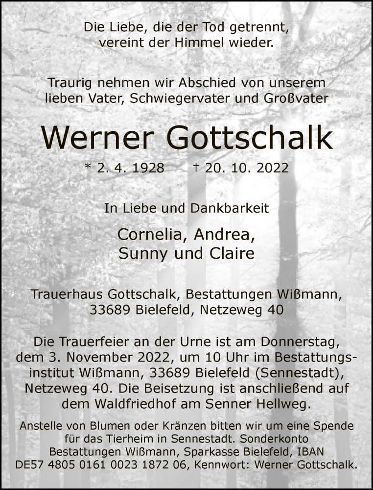 Hier finden Sie alle Traueranzeigen aus der Zeitung, die bisher für Werner Gottschalk erschienen sind. Weitere Traueranzeigen, die in der Zeitung erscheinen, werden hier ebenfalls aufgelistet