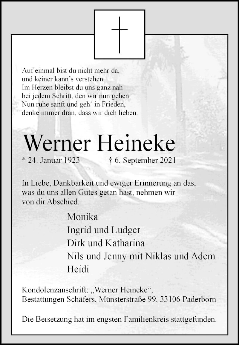 Hier finden Sie alle Traueranzeigen aus der Zeitung, die bisher für Werner Heineke erschienen sind. Weitere Traueranzeigen, die in der Zeitung erscheinen, werden hier ebenfalls aufgelistet