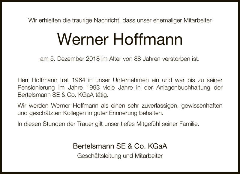 Hier finden Sie alle Traueranzeigen aus der Zeitung, die bisher für Werner Hoffmann erschienen sind. Weitere Traueranzeigen, die in der Zeitung erscheinen, werden hier ebenfalls aufgelistet