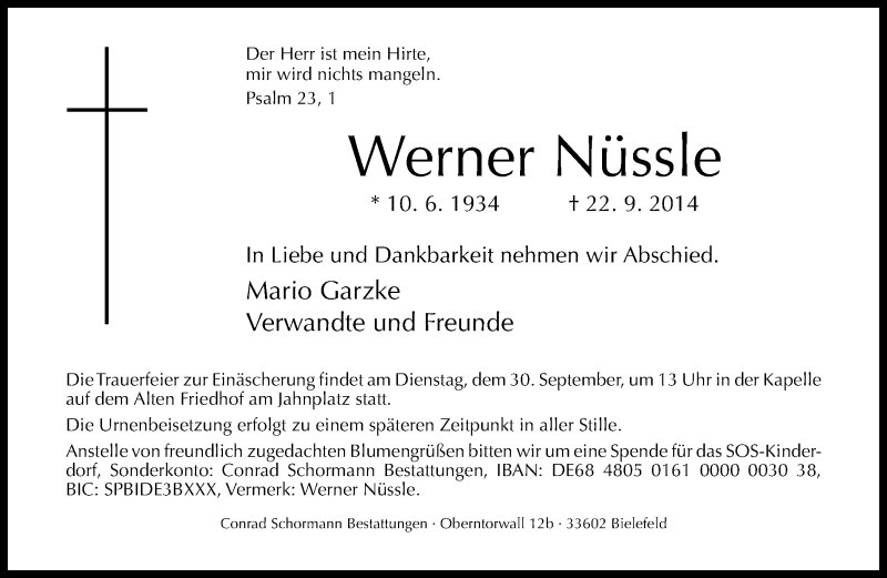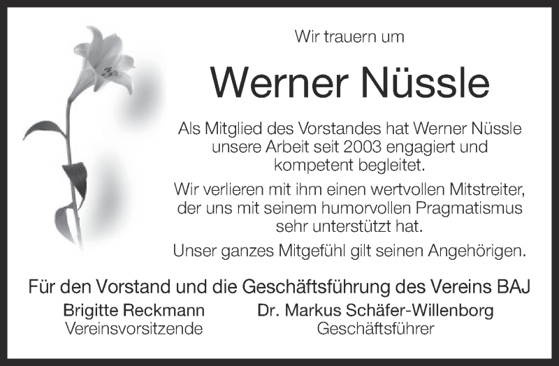 Hier finden Sie alle Traueranzeigen aus der Zeitung, die bisher für Werner Nüssle erschienen sind. Weitere Traueranzeigen, die in der Zeitung erscheinen, werden hier ebenfalls aufgelistet