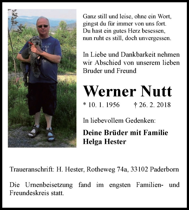 Hier finden Sie alle Traueranzeigen aus der Zeitung, die bisher für Werner Nutt erschienen sind. Weitere Traueranzeigen, die in der Zeitung erscheinen, werden hier ebenfalls aufgelistet