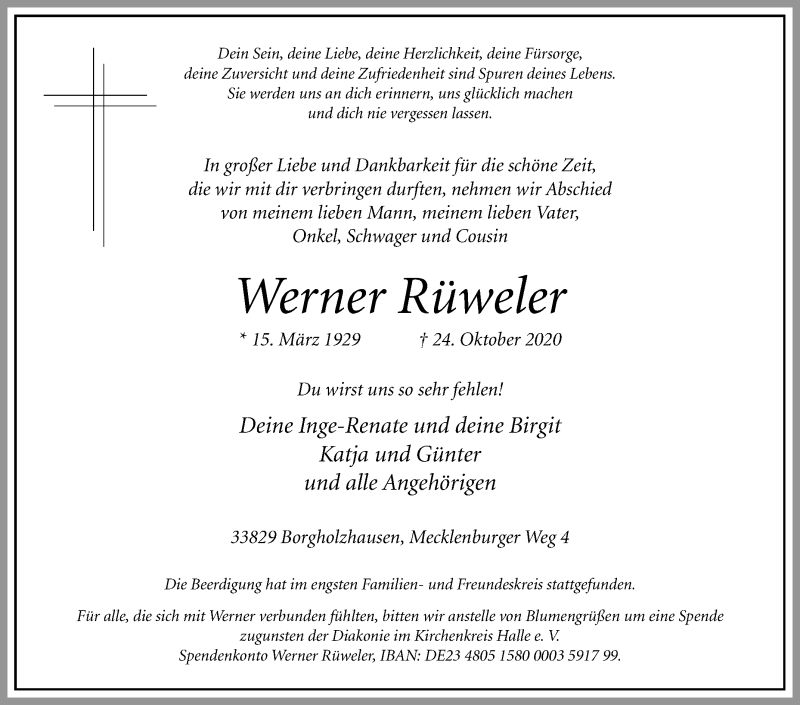 Hier finden Sie alle Traueranzeigen aus der Zeitung, die bisher für Werner Rüweler erschienen sind. Weitere Traueranzeigen, die in der Zeitung erscheinen, werden hier ebenfalls aufgelistet