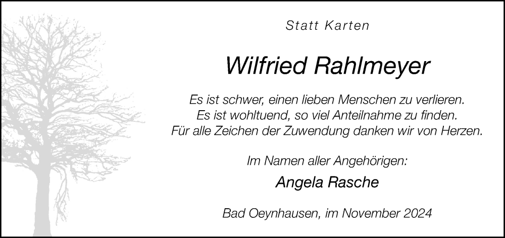 Hier finden Sie alle Traueranzeigen aus der Zeitung, die bisher für Wilfried Rahlmeyer erschienen sind. Weitere Traueranzeigen, die in der Zeitung erscheinen, werden hier ebenfalls aufgelistet