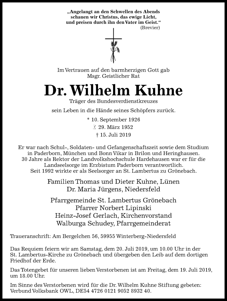 Hier finden Sie alle Traueranzeigen aus der Zeitung, die bisher für Wilhelm Kuhne erschienen sind. Weitere Traueranzeigen, die in der Zeitung erscheinen, werden hier ebenfalls aufgelistet