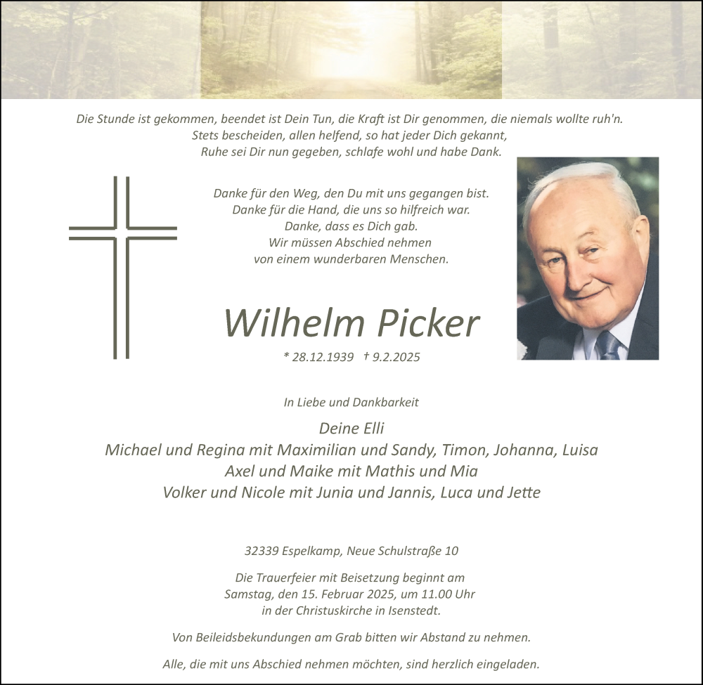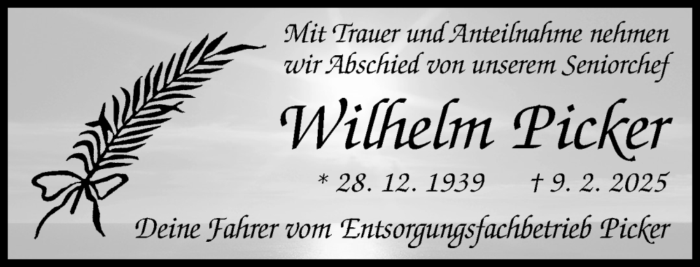 Hier finden Sie alle Traueranzeigen aus der Zeitung, die bisher für Wilhelm Picker erschienen sind. Weitere Traueranzeigen, die in der Zeitung erscheinen, werden hier ebenfalls aufgelistet