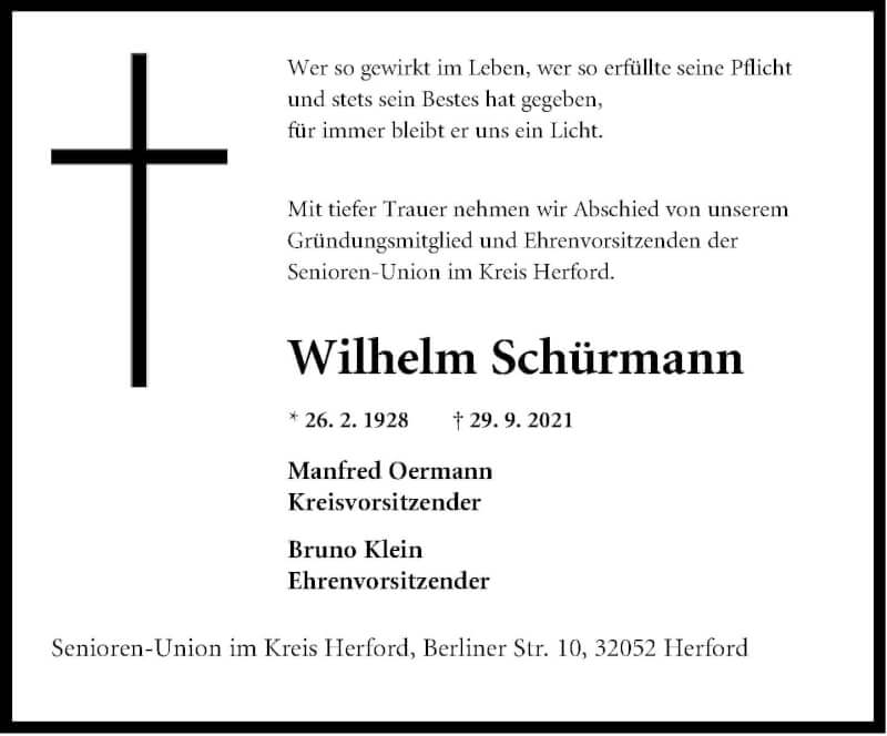 Hier finden Sie alle Traueranzeigen aus der Zeitung, die bisher für Wilhelm Schürmann erschienen sind. Weitere Traueranzeigen, die in der Zeitung erscheinen, werden hier ebenfalls aufgelistet