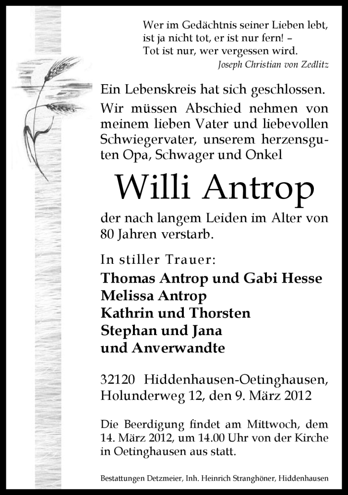 Hier finden Sie alle Traueranzeigen aus der Zeitung, die bisher für Willi Antrop erschienen sind. Weitere Traueranzeigen, die in der Zeitung erscheinen, werden hier ebenfalls aufgelistet