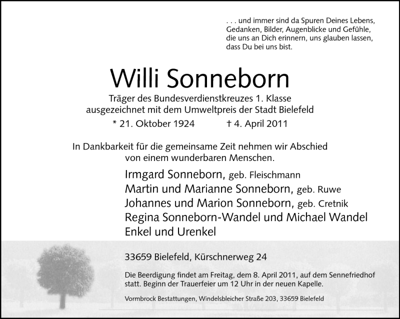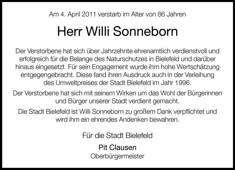 Hier finden Sie alle Traueranzeigen aus der Zeitung, die bisher für Willi Sonneborn erschienen sind. Weitere Traueranzeigen, die in der Zeitung erscheinen, werden hier ebenfalls aufgelistet