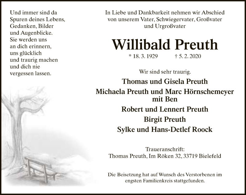 Hier finden Sie alle Traueranzeigen aus der Zeitung, die bisher für Willibald Preuth erschienen sind. Weitere Traueranzeigen, die in der Zeitung erscheinen, werden hier ebenfalls aufgelistet
