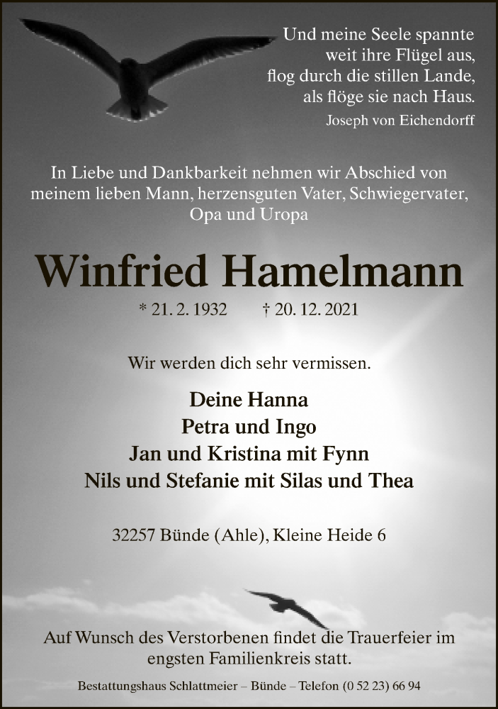 Hier finden Sie alle Traueranzeigen aus der Zeitung, die bisher für Winfried Hamelmann erschienen sind. Weitere Traueranzeigen, die in der Zeitung erscheinen, werden hier ebenfalls aufgelistet