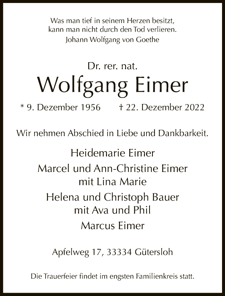 Hier finden Sie alle Traueranzeigen aus der Zeitung, die bisher für Wolfgang Eimer erschienen sind. Weitere Traueranzeigen, die in der Zeitung erscheinen, werden hier ebenfalls aufgelistet