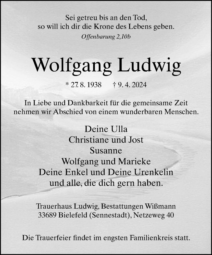Hier finden Sie alle Traueranzeigen aus der Zeitung, die bisher für Wolfgang Ludwig erschienen sind. Weitere Traueranzeigen, die in der Zeitung erscheinen, werden hier ebenfalls aufgelistet