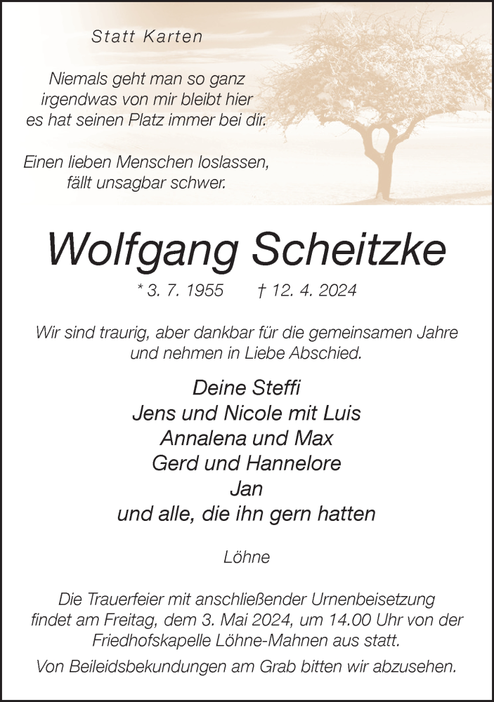 Hier finden Sie alle Traueranzeigen aus der Zeitung, die bisher für Wolfgang Scheitzke erschienen sind. Weitere Traueranzeigen, die in der Zeitung erscheinen, werden hier ebenfalls aufgelistet