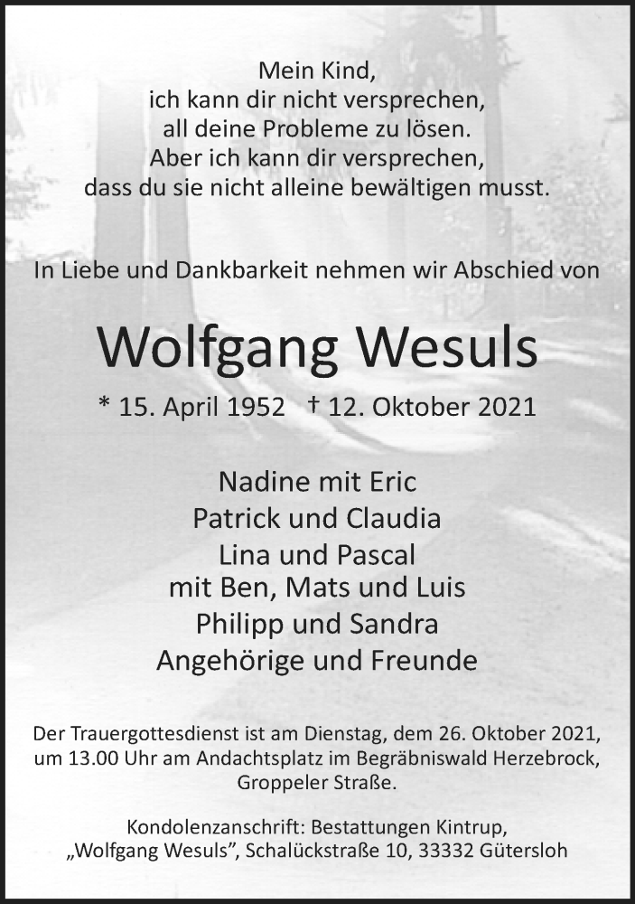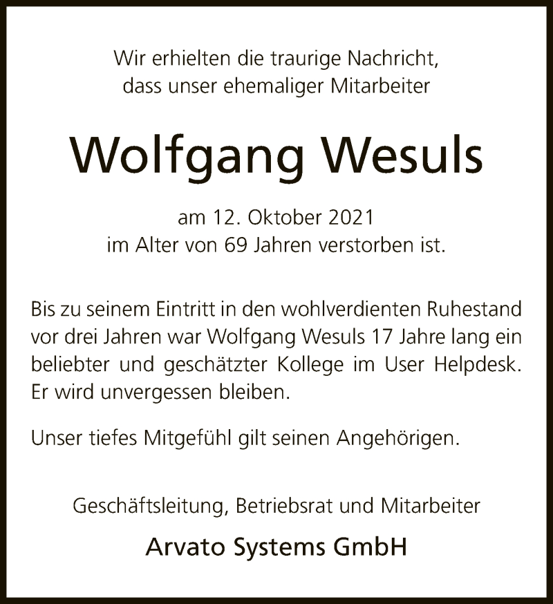 Hier finden Sie alle Traueranzeigen aus der Zeitung, die bisher für Wolfgang Wesuls erschienen sind. Weitere Traueranzeigen, die in der Zeitung erscheinen, werden hier ebenfalls aufgelistet